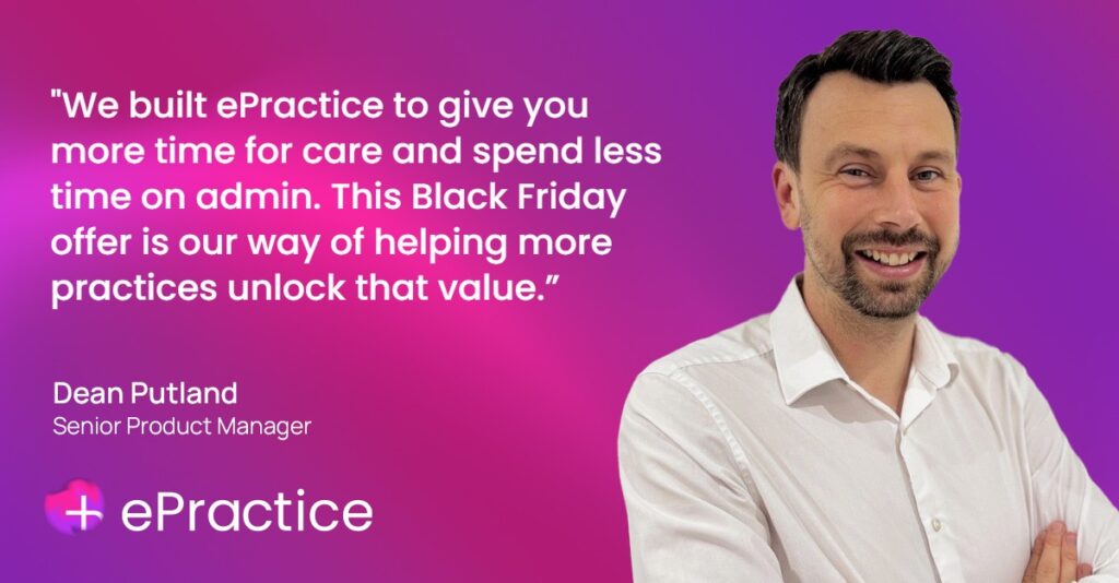 Our Black Friday deal gives you immediate access to ePractice Pro – the most advanced version of our practice management software. And we’re about to make it even better with smarter patient pathways, intelligent invoicing, advanced analytics, and seamless communication tools. It’s all designed to help private practices work more efficiently, scale more easily and deliver even better care.